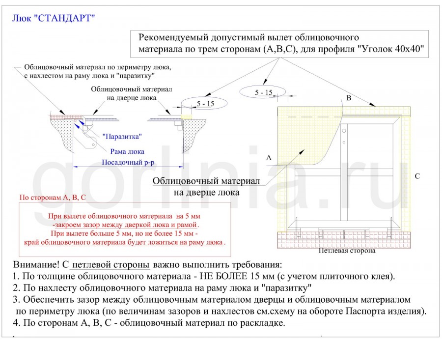 Люк напольный под плитку АМО с амортизаторами сварен из стальной трубы и уголка 40х40х4мм. Окрашен в высокотемпературной камере порошковым покрытием. Предназначен для использования внутри помещений. Изделие оснащено пневмоподъемниками, скрытыми петлями и регулируемым замком со съемной ручкой. Тип открывания демпферной петли: распашной. Крышка двери подготовлена под облицовку керамической плиткой или ламинатом по прилагаемой инструкции. Купите продукцию АМО по специальной цене от производителя. Заказывайте с доставкой по России!