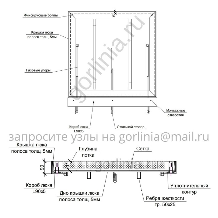 Корпус сварен из углового профиля горячего проката с толщиной стенки 5 мм; корыто - из листового проката 3 мм усилено снизу профильной трубой. Сварка аргонно-дуговая. Характер шва: сплошной с присадками меди.