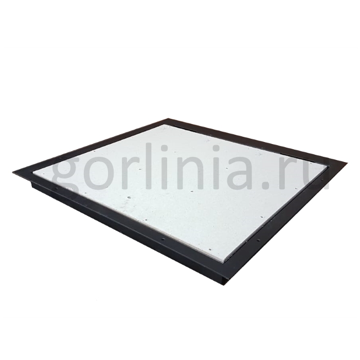 Детали каркаса выполнены из стального проката 3 мм. Крышка обвязана трубой 30х20 в комбинированном положении. Заполнение дверцы - ГВЛ под скрытую облицовку керамической плиткой по принципу невидимки.