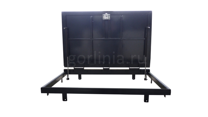 Рама без наличников выставляется в существующем отверстии 60*80 см с допусками, крепится в перекрытии через вертикальные пластины даже когда Ваш ремонт закончен и пол выложен керамогранитом или настелена ламинированная доска.