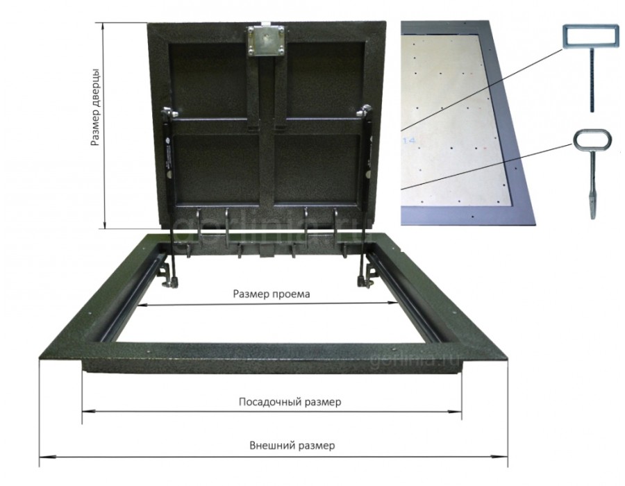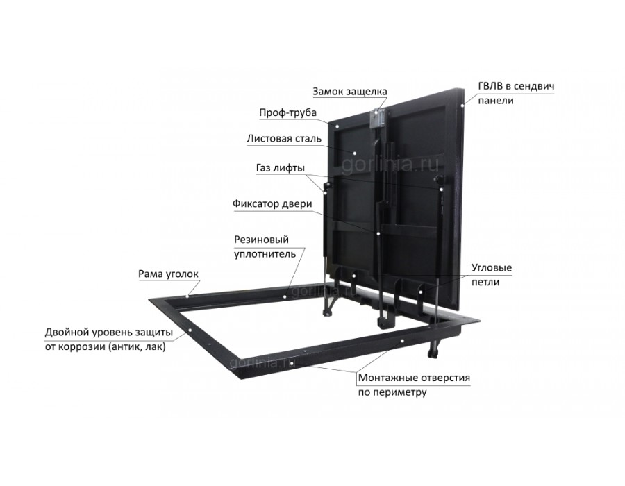 - толкатели типажа газ лифт, угловые шарниры и твердые связи делают люк для погреба в доме безопасным и надежным;