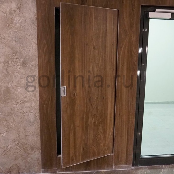 Базовая конструкция из коробчатого алюминиевого профиля на осевых шарнирах доработана огнеупорными элементами: минеральной плитой в сэндвиче из ГВЛ, термоактивным ленточным уплотнителем по притвору в раме.